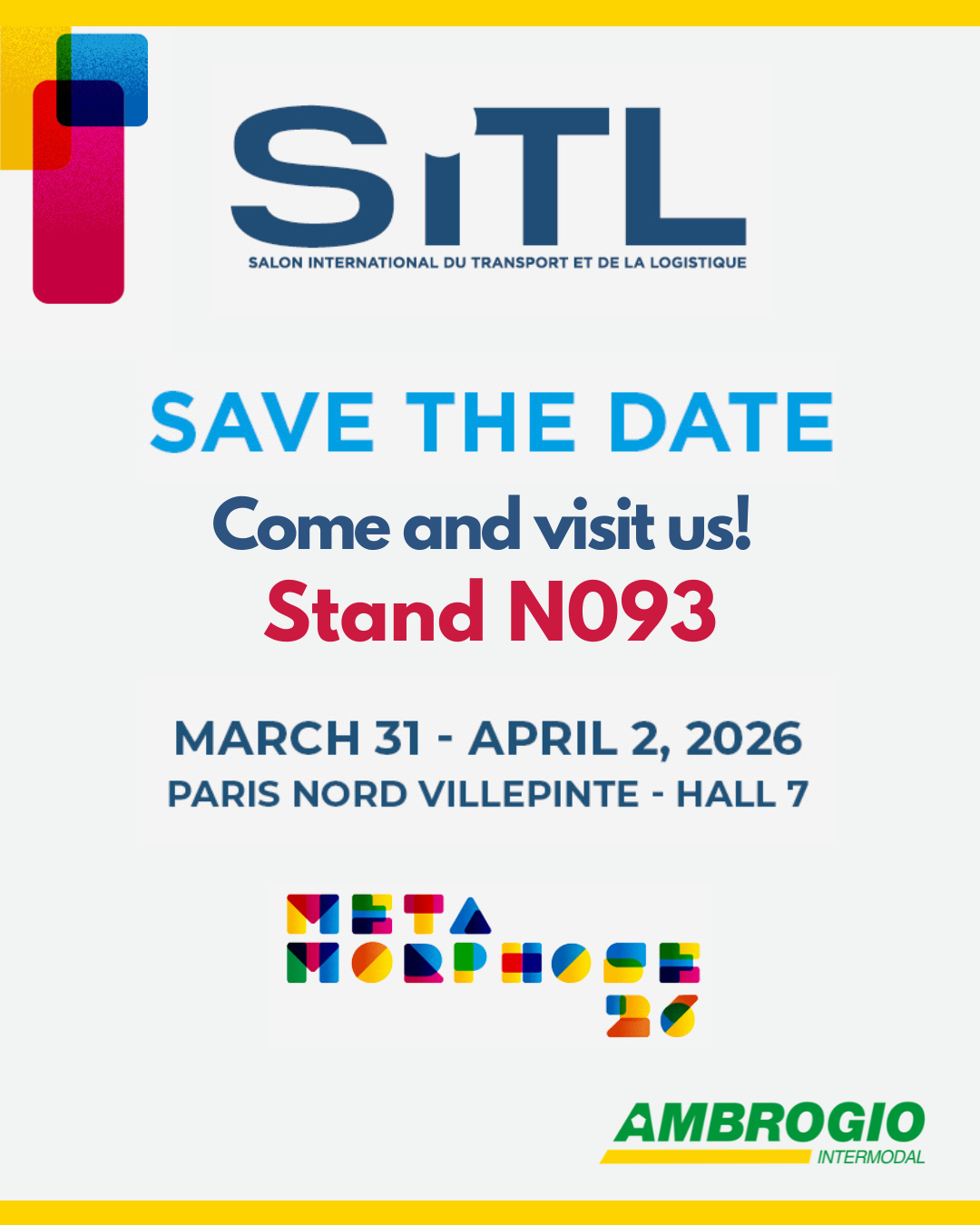 Ambrogio Intermodal sarà presente alla fiera SITL, in programma dal 31 marzo al 2 aprile a Parigi, uno degli appuntamenti di riferimento a livello internazionale per il settore dei trasporti e della logistica.